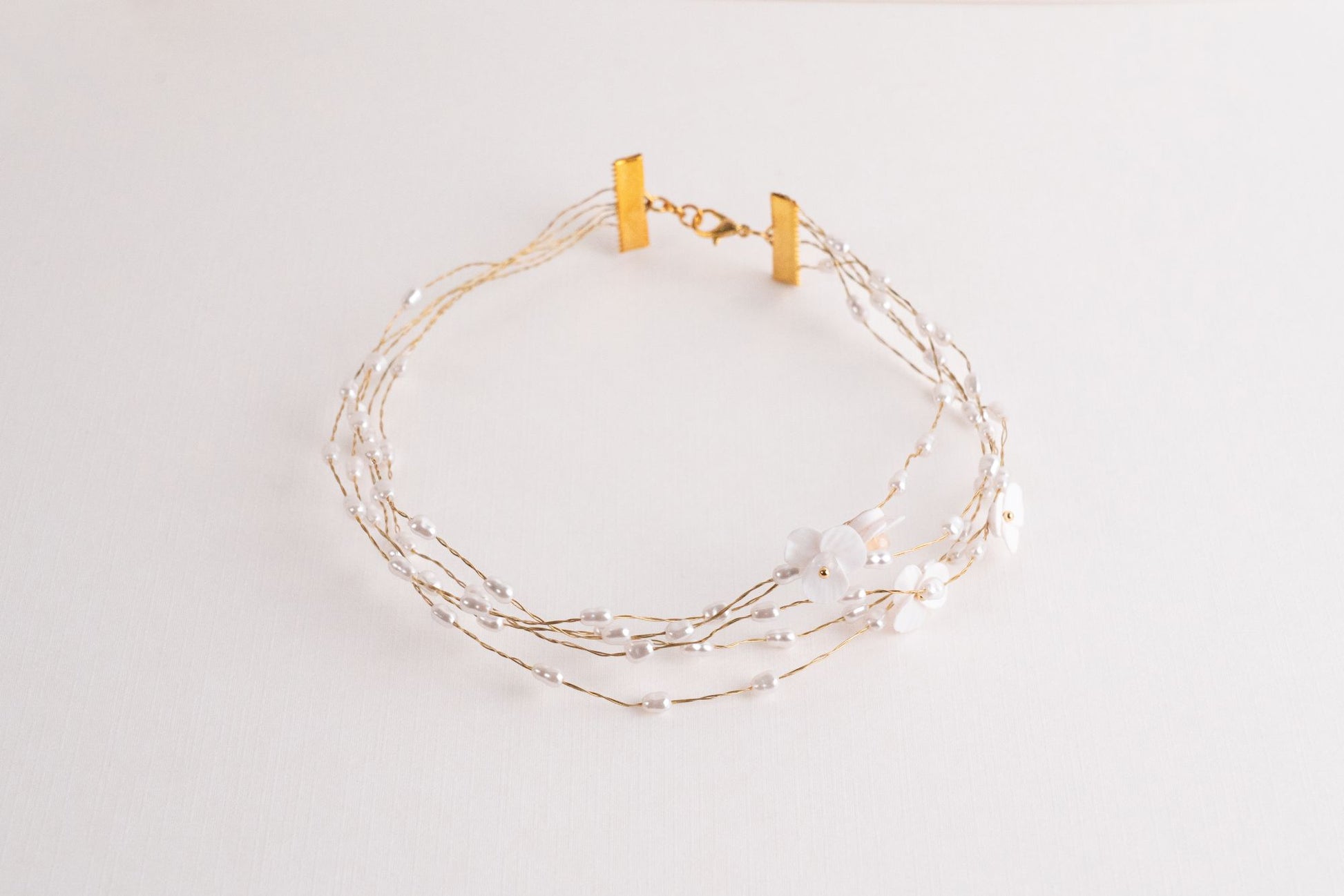 Un diseño clásico y delicado que nunca pasa de moda. Esta gargantilla combina el brillo sutil de finas perlitas con la elegancia del hilo bañado en oro, creando una pieza versátil que realza cualquier look.