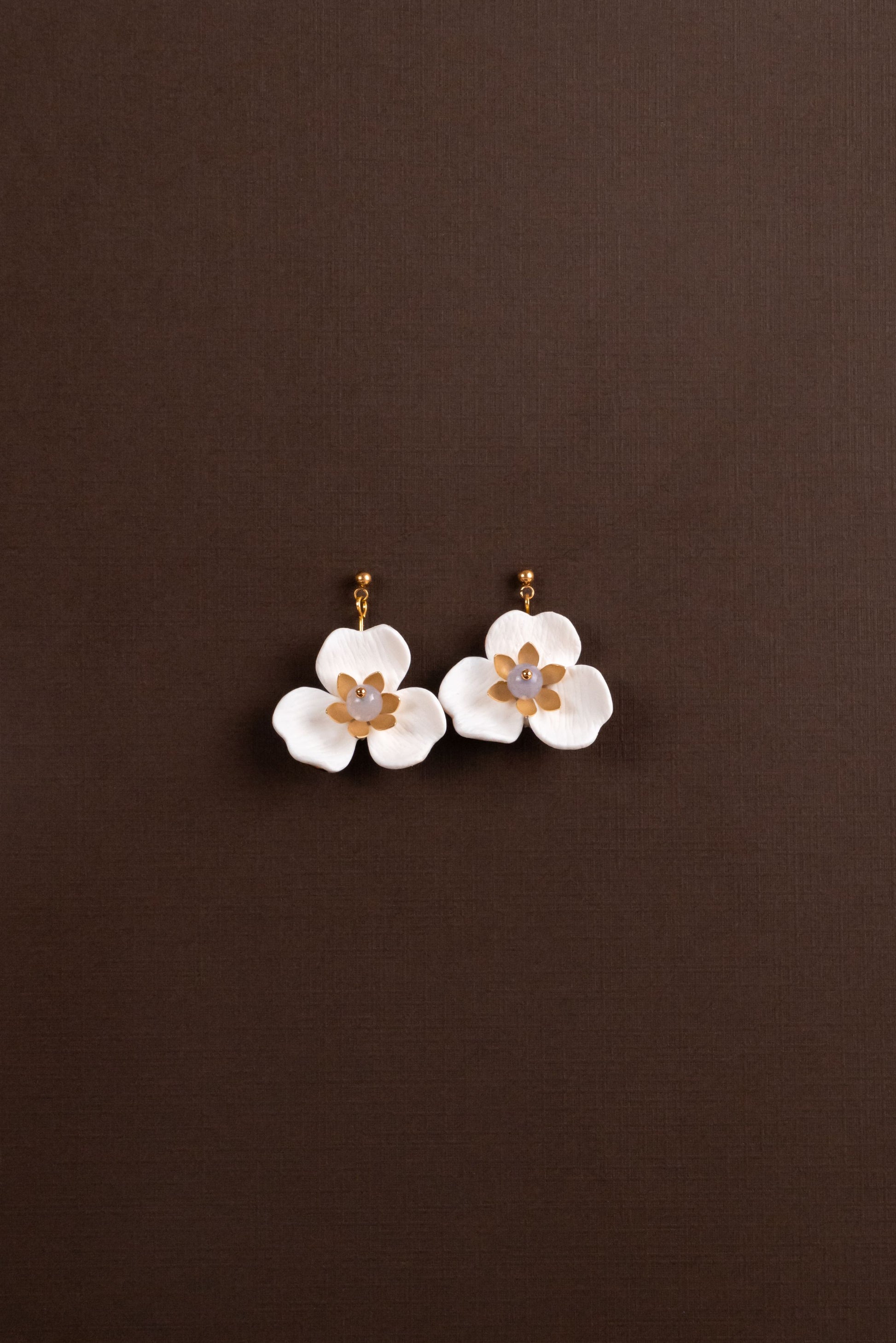 Delicados pendientes en forma de flor, acabados en baño de oro. Su centro está realzado con un aplique de piedra natural, que aporta un toque único y elegante. Una pieza ligera y femenina, ideal para dar frescura y distinción a cualquier look.